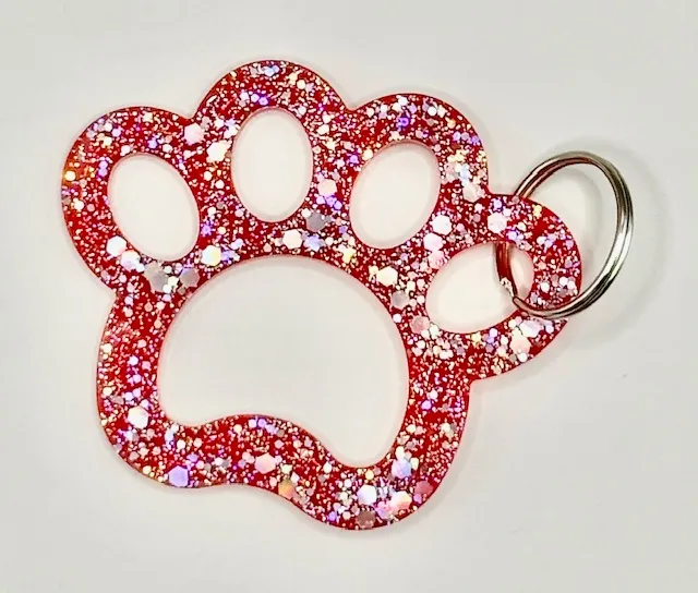 Acrylic Red Hollow Paw Print Key Chain