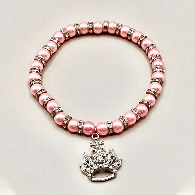 Necklace with Pearl Beading and Princess Crown Pendant 12 quantity